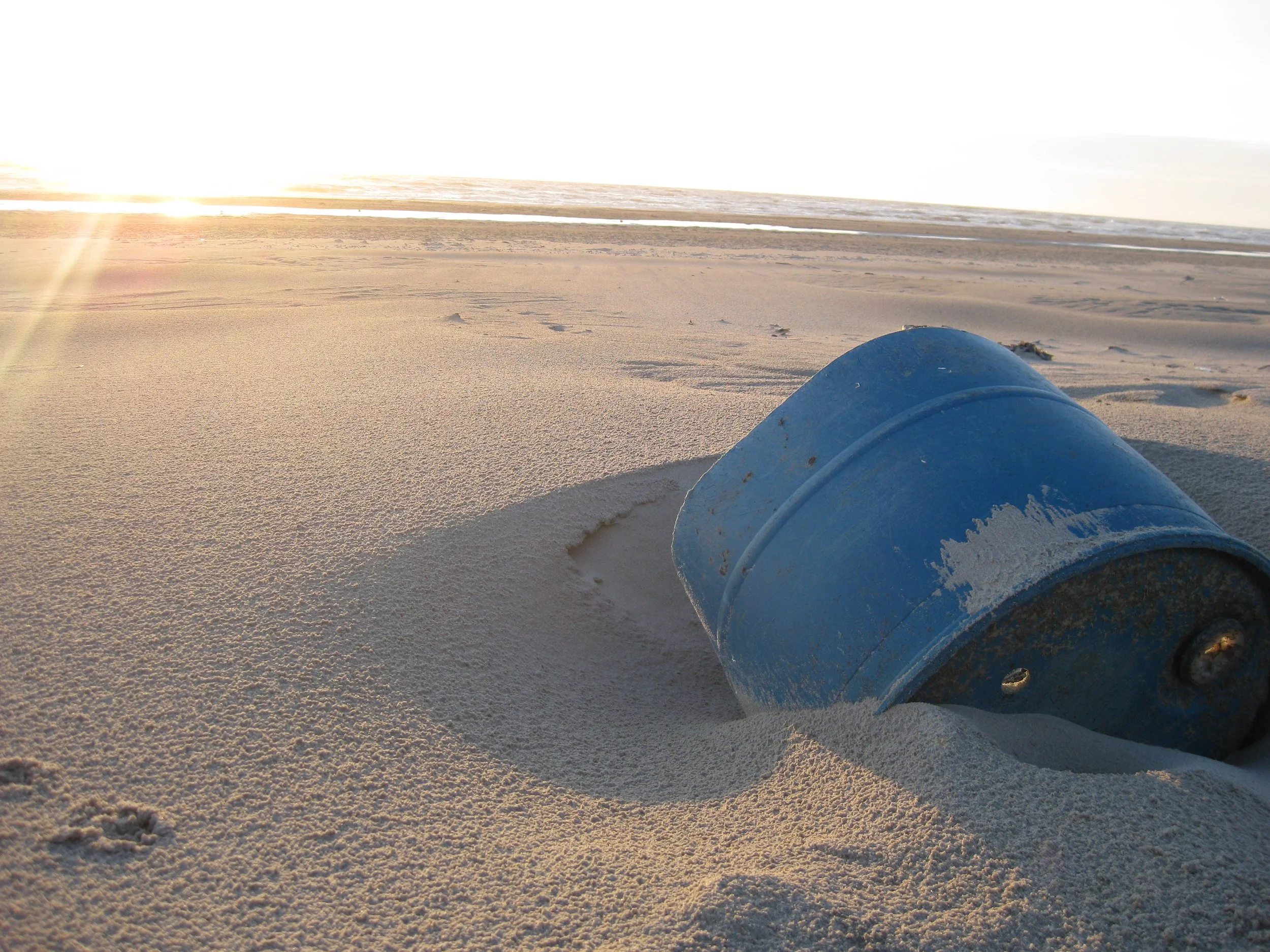 Vejers strand med blå tønde - Foto: Hanne Schwarz